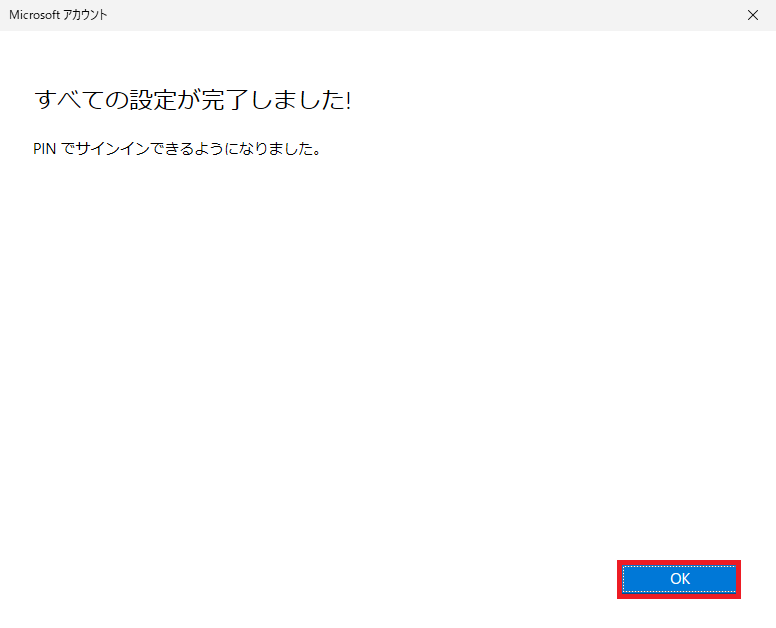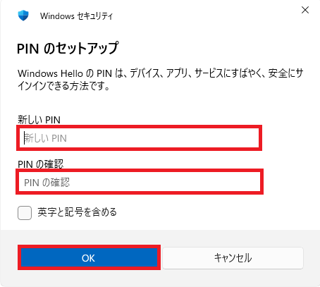 PINを設定する前に、本人確認としてMicrosoftアカウントのパスワード入力が必要です。